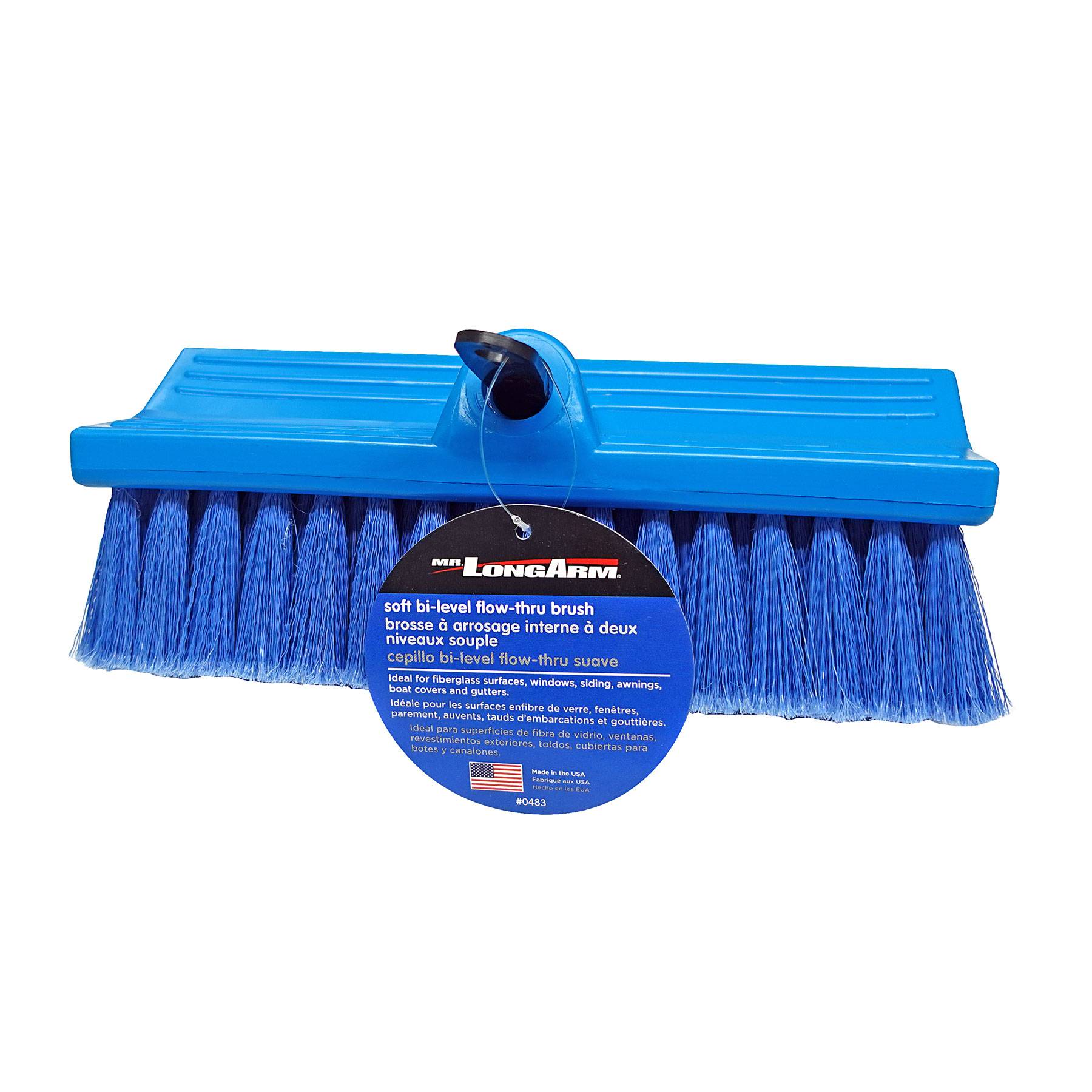 Our Soft Bi-Level Flow-Thru Wash Brush is ideal for fiberglass surfaces, windows, siding, awnings, boat covers and gutters. 100% polystyrene fibers are chemical resistant and work well with cleaning solutions. The brush fibers are flagged, a process that splits the ends of the fibers making them even softer. Longer fibers and dual cleaning surfaces allow this brush to clean where a shorter fiber brush can’t reach. A lightweight yet durable plastic block reduces stress. High fiber density for a longer life than most other brushes.